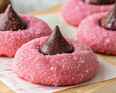 Strawberry Kiss Cookies combine soft, buttery strawberry-infused dough with a rich chocolate kiss pressed into the center. Made with cake...