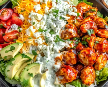 Buffalo Chicken Bowls are a bold, high-protein meal featuring tender shredded chicken slow-cooked in tangy buffalo sauce and ranch, served...