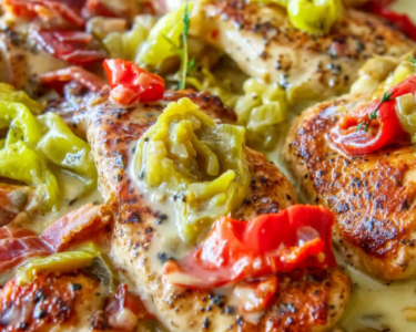 Pepperoncini Chicken Skillet is a bold yet comforting one-pan dinner featuring tender seared chicken simmered in a tangy, creamy...