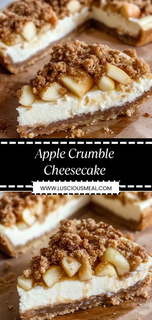 This apple crumble cheesecake combines the rich, creamy indulgence of New York-style cheesecake with the warm, comforting flavors of classic apple crumble to create a dessert that celebrates the best of both worlds. The silky cream cheese base is layered with spiced apples and topped with a golden, buttery crumble that provides perfect textural contrast. If you enjoy this style of hybrid dessert, you might also like pumpkin cheesecake with gingersnap crust, berry crumble bars, or other desserts that blend classic comfort food elements with elegant presentation.
