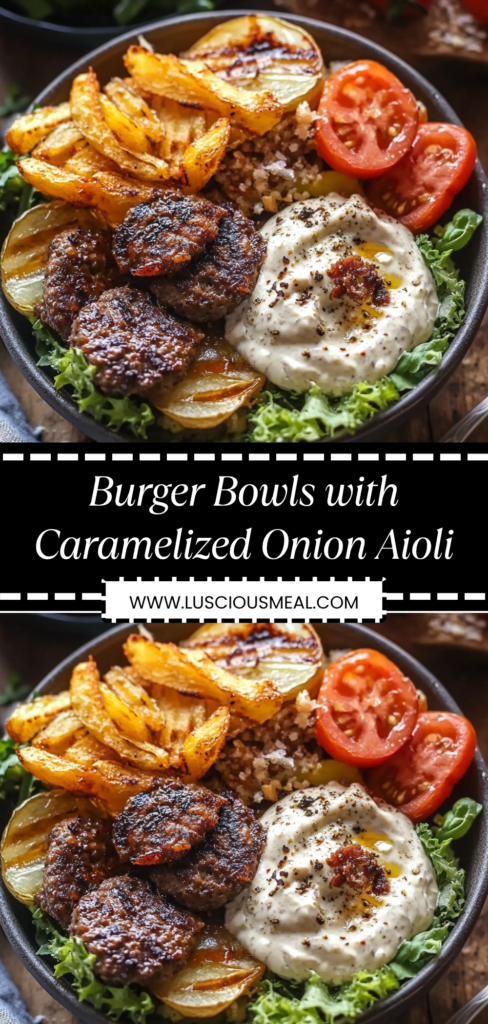 These burger bowls are everything you love about a great burger but in a healthier, more satisfying format that lets all those amazing flavors shine without being hidden under a heavy bun. Picture perfectly seasoned ground beef cooked until beautifully browned, served over crisp lettuce with juicy tomatoes, pickles, cheese, and the most incredible caramelized onion aioli that takes this from simple to absolutely extraordinary. What makes these bowls so addictive is how the caramelized onion aioli brings together all the classic burger flavors while adding a gourmet touch that makes every bite feel special and indulgent. I started making these when I wanted all the satisfaction of a burger but something that felt lighter and more nutritious, and they’ve become such a favorite that I actually prefer them to regular burgers now because you can taste every component so much better without the bread getting in the way.