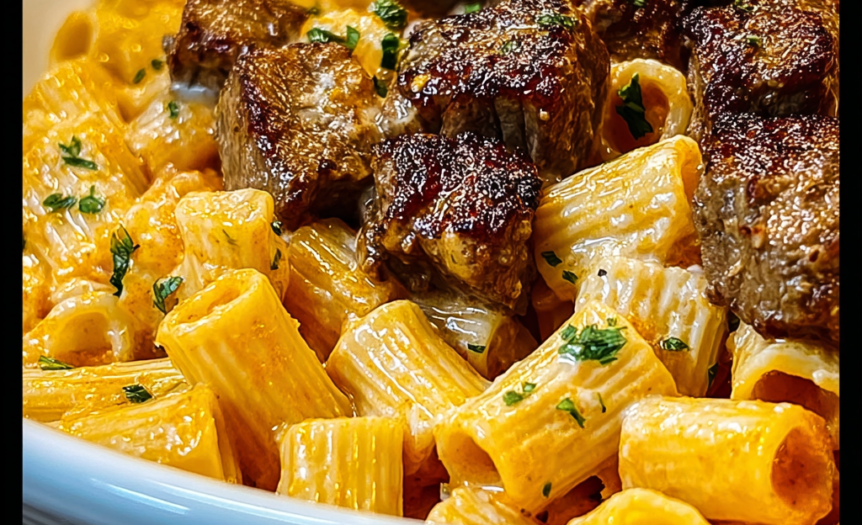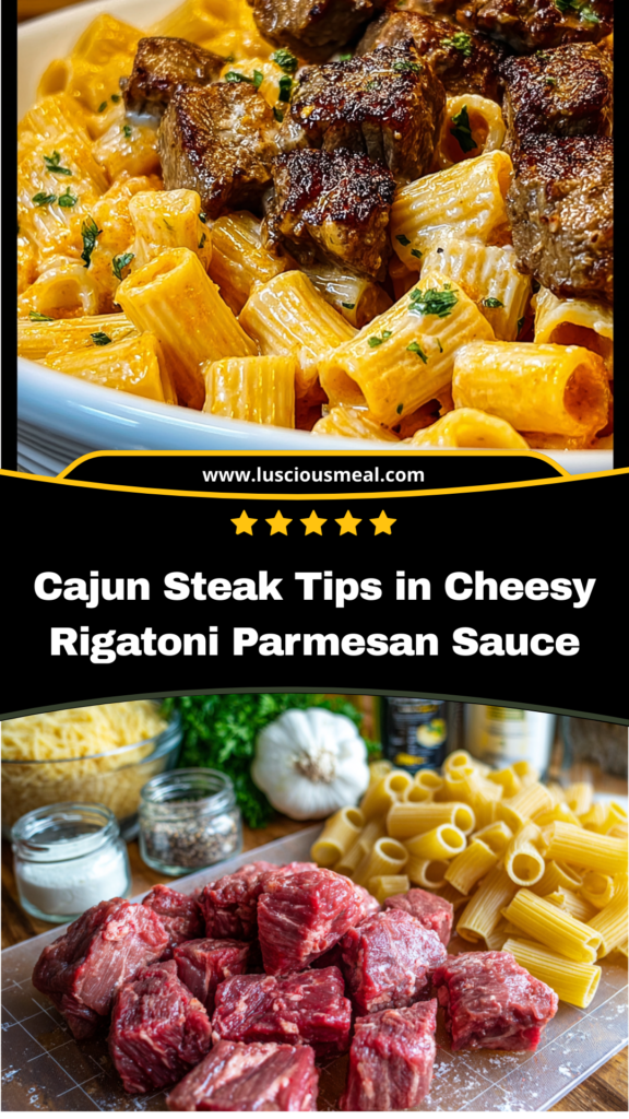 Cajun Steak Tips in Cheesy Rigatoni Parmesan Sauce – Bold, Creamy, and Utterly Irresistible