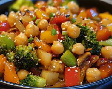 Colorful vegetables and hearty chickpeas sizzled in savory sauce create a nutritious meal supporting stable blood sugar while delivering...