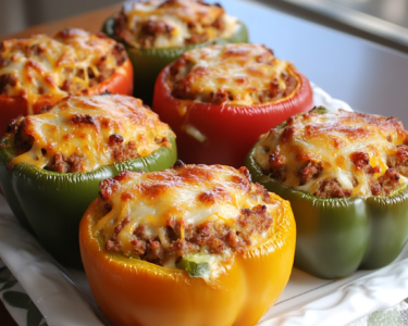 Vibrant bell peppers filled with seasoned ground turkey and cauliflower rice create a nutritious meal supporting stable blood sugar while...