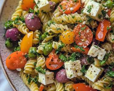 Vibrant vegetables and tangy feta tossed with perfectly cooked pasta create a refreshing dish that transports your taste buds to the sunny...