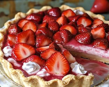 Vibrant red strawberries nestled in crystal-clear glaze atop flaky crust create a spectacular dessert that celebrates peak berry season....