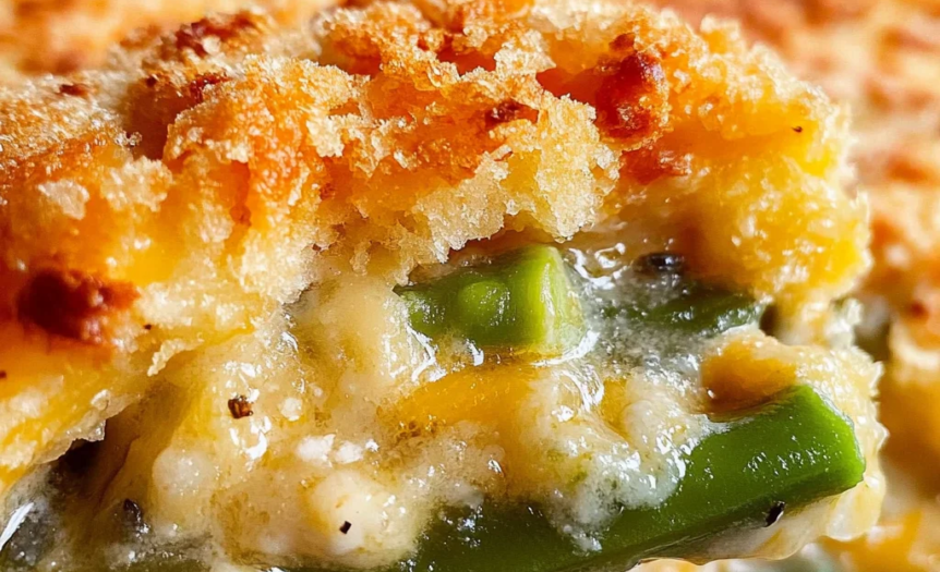 Cheddar Bay Green Bean Casserole elevates the classic holiday side dish with a creamy cheddar base and a golden biscuit topping inspired by Red Lobster’s famous Cheddar Bay Biscuits. Tender green beans are baked in a rich cheese sauce, then crowned with fluffy, savory biscuits brushed in seasoned butter. It’s comforting, indulgent, and guaranteed to stand out on any holiday table.