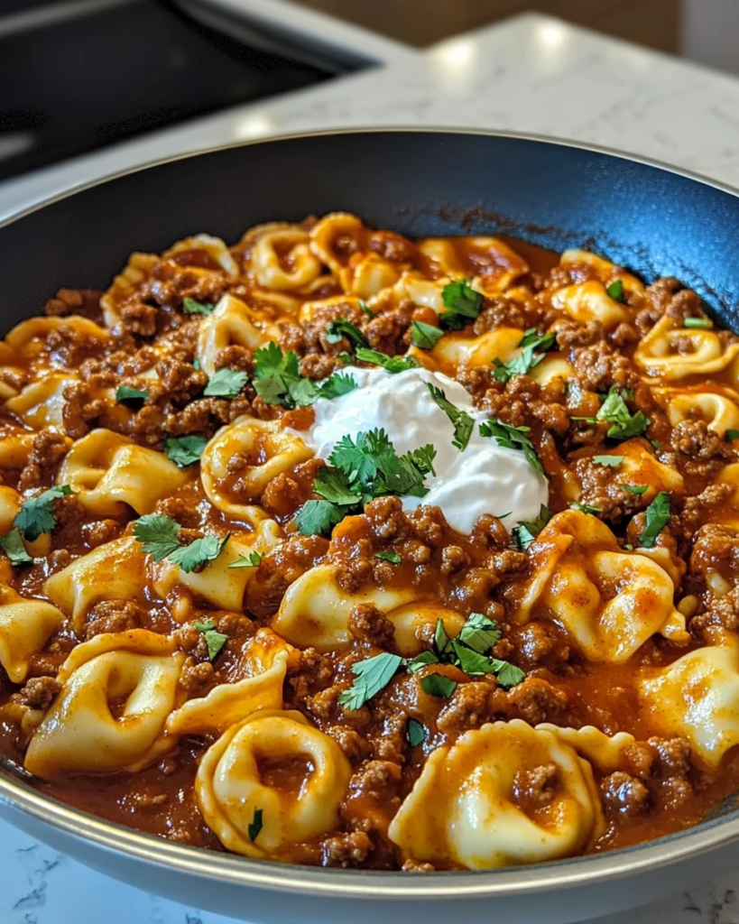 Cheesy Beef Enchilada Tortellini is a perfect example of how combining cuisines can create something deliciously unique. With bold Tex-Mex spices, creamy cheese sauce, and tender pasta, this dish offers the best of both worlds in one easy skillet. It’s quick enough for weeknight dinners yet satisfying enough to serve to guests. For a lighter variation, you can substitute lean ground beef or ground turkey and reduce the cream cheese slightly while still maintaining the dish’s signature flavor and creaminess.