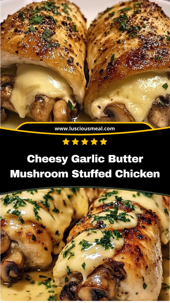 This cheesy garlic butter mushroom stuffed chicken proves that impressive dinner doesn’t have to mean complicated cooking. By combining familiar ingredients with proper technique and a little creativity, you can create a dish that looks and tastes like it came from an upscale restaurant while being completely achievable for home cooks. Whether you’re entertaining guests or treating your family to something special, this recipe delivers the kind of memorable meal that creates lasting food memories and earns you a reputation as an exceptional cook.