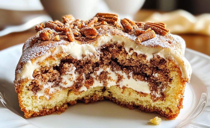 This Cinnamon Bun Cake transforms the flavors of a classic cinnamon roll into a quick, no-yeast cake format. A buttery swirl of cinnamon sugar runs through tender vanilla cake, topped with cream cheese frosting.