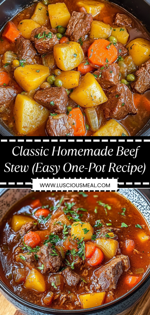 This classic homemade beef stew delivers all the comforting flavors of traditional slow-cooked stew in one pot, featuring tender chunks of beef, hearty vegetables, and a rich, savory broth that develops incredible depth through proper browning and simmering techniques. The result is a soul-warming meal that transforms simple ingredients into something extraordinary through patience and technique. If you enjoy this style of hearty, one-pot comfort food, you might also like chicken and dumplings, pot roast, or other braised dishes that create maximum flavor through slow, gentle cooking.