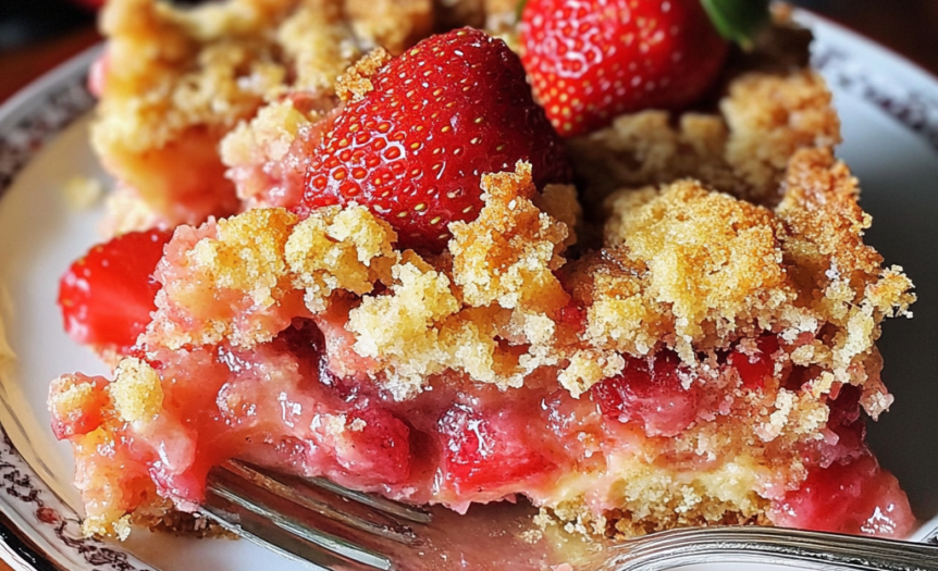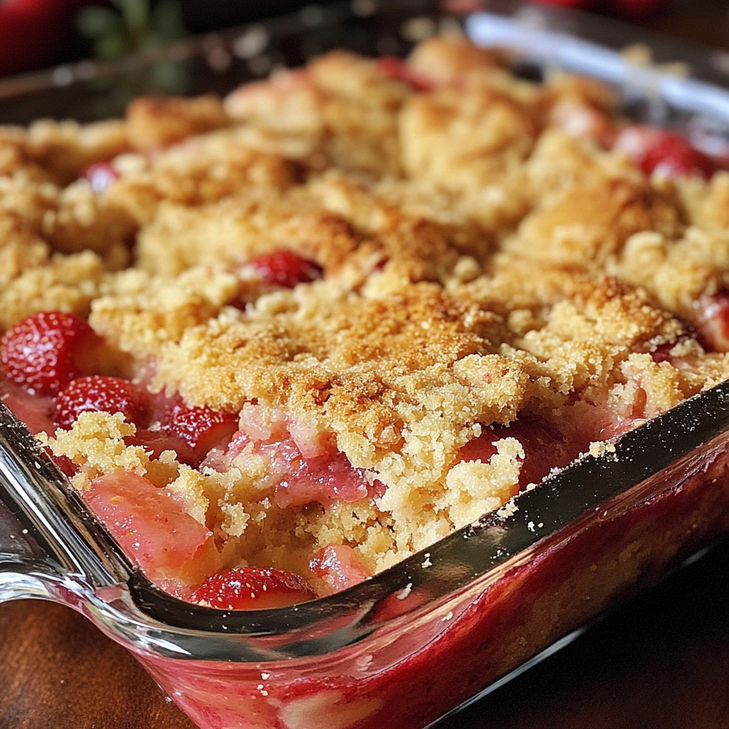 A perfect blend of tart rhubarb and sweet strawberries topped with a buttery cake mixture – this dump cake is the epitome of effortless baking. It’s the perfect dessert for any occasion!