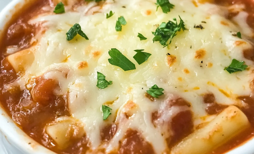 - Ladle the hot soup into bowls and top each serving with a dollop of the ricotta mixture. The contrast between the hot soup and cool, creamy ricotta creates the layered experience reminiscent of traditional lasagna. Garnish with additional mozzarella, Parmesan, and fresh herbs if desired.