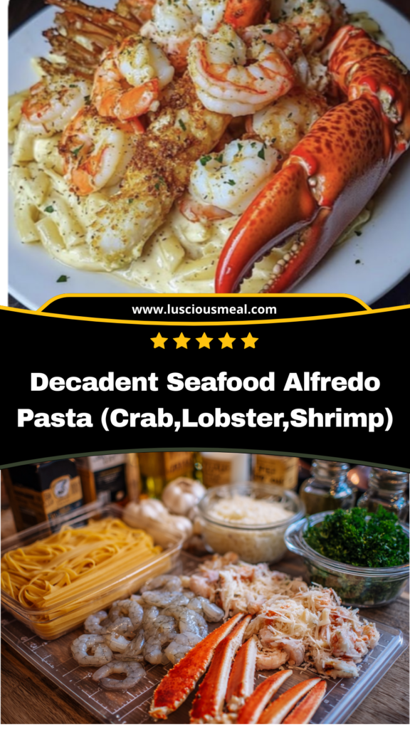 Decadent Seafood Alfredo Pasta with Crab, Lobster, and Shrimp – Restaurant-Quality Luxury at Home