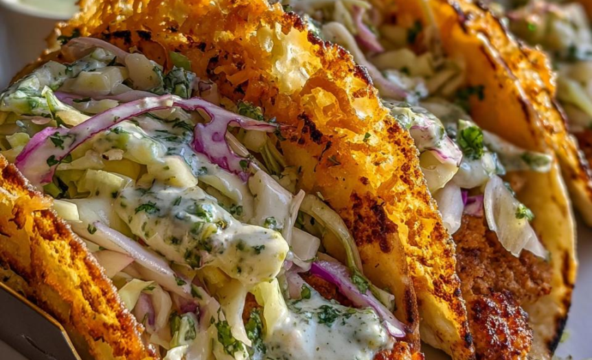 Dill Pickle Ranch Smash Chicken Tacos with Crispy Cheese Delight