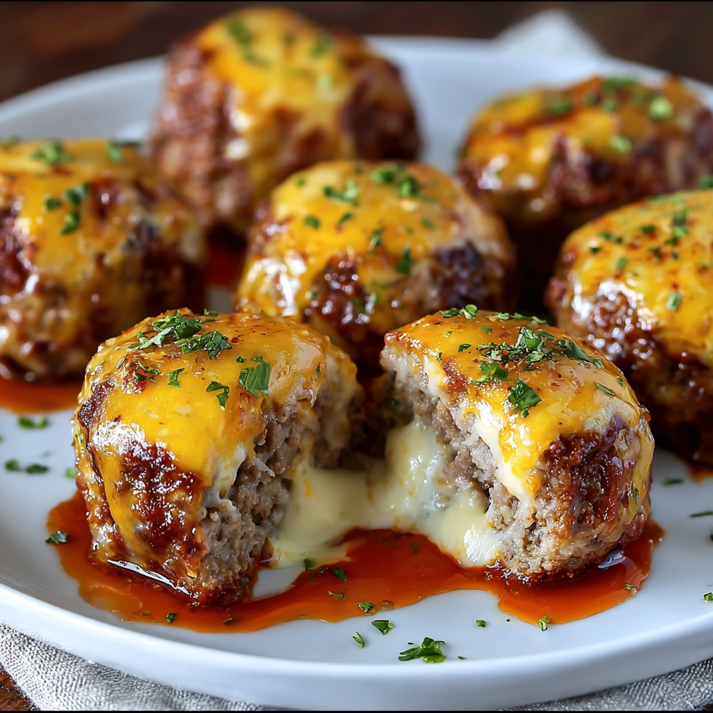What makes these meatloaf bites special is how they concentrate all the best elements of meatloaf into perfect individual portions. Each bite delivers tender, flavorful meat seasoned with aromatic herbs and onions, surrounding a surprise center of melted cheese that creates an irresistible pull when you bite into it. The smaller size means they cook quickly and evenly, developing a beautiful caramelized exterior while staying incredibly moist inside.