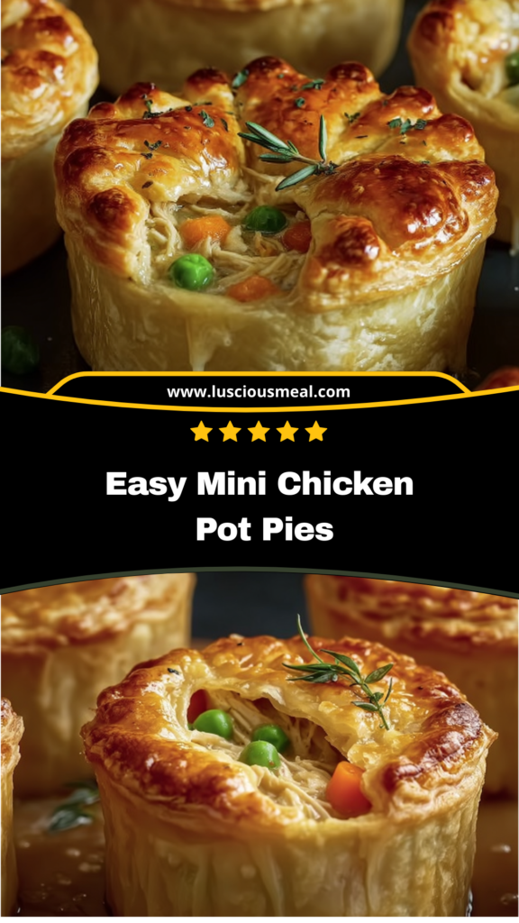 These easy mini chicken pot pies prove that comfort food can be both practical and special. They take everything wonderful about traditional pot pie and make it more accessible for busy families while losing none of the warmth and satisfaction that makes this dish such a beloved classic. Whether you’re making them for a cozy family dinner or preparing a batch for the freezer, these little pies deliver big comfort in perfect individual portions. The combination of flaky pastry, creamy filling, and tender chicken creates the kind of meal that turns an ordinary evening into something memorable—exactly what the best comfort food should do.
