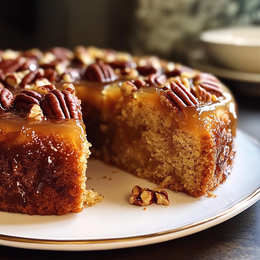 The magic happens when you flip this cake, revealing a gorgeous topping of perfectly arranged pecans in a golden caramel sauce. It’s easier than it looks but impressive enough for company!