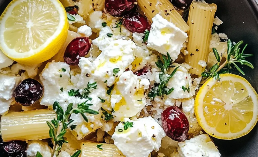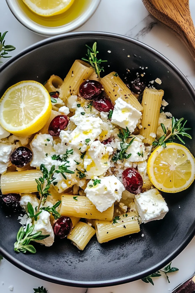 Feta & Cranberry Rigatoni Salad with Lemon Vinaigrette is a bright, flavor-balanced pasta dish that combines creamy feta, sweet-tart cranberries, and a zesty citrus dressing. The ridged rigatoni captures the vinaigrette beautifully, ensuring every bite is coated in tangy, herbaceous flavor. It’s refreshing yet satisfying—perfect as a light main or vibrant side.