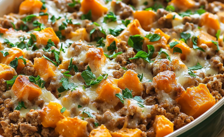 Ground turkey: The protein foundation of this dish, providing lean nutrition without the heaviness of red meat while still delivering satisfying substance. Choose ground turkey that’s 93/7 or 85/15 lean-to-fat ratio for the best balance of flavor and healthfulness – the small amount of fat prevents the meat from becoming dry and helps carry the seasonings throughout the dish. Unlike ground beef, turkey benefits from more aggressive seasoning since its mild flavor serves as an excellent canvas for herbs and spices. When browning, break the meat into medium-sized pieces rather than fine crumbles – this creates better texture in the final dish and prevents the turkey from disappearing into the sweet potato layers. The lean nature of turkey makes it an excellent choice for those watching calories or saturated fat intake while still wanting a protein-rich, satisfying meal.