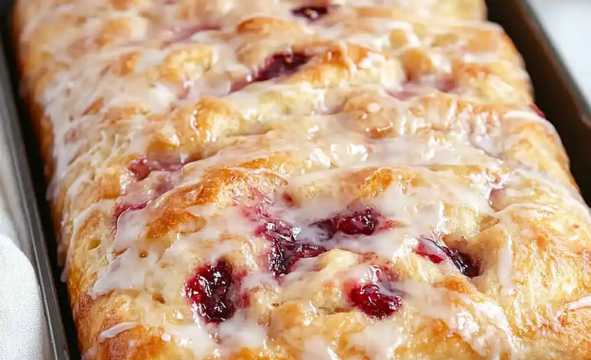 Homemade Jam Donut Focaccia is a playful fusion of airy Italian focaccia and a classic jelly-filled donut. Soft, olive oil–enriched bread is baked until golden, then filled generously with raspberry preserves and finished with a sweet glaze. The result is fluffy, jam-studded bread with a glossy icing layer that tastes like a bakery-style treat.