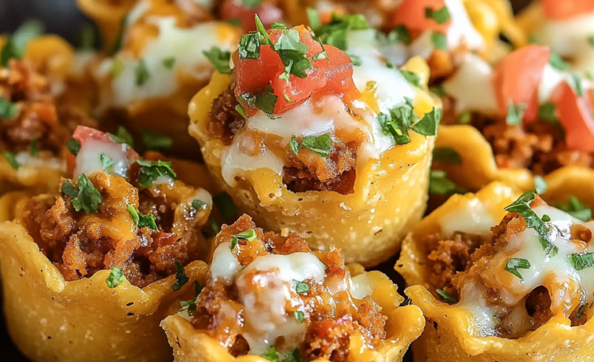 • Ground beef provides hearty protein foundation for filling • Taco seasoning creates authentic Mexican flavor profile • Cream cheese adds creaminess that binds ingredients together • Ranch seasoning introduces tangy herbal complexity • Cheddar cheese creates essential melty texture throughout • Wonton wrappers form perfectly crispy shells with minimal effort • Fresh cilantro brightens heavy flavors with herbal freshness • Lime juice balances richness with necessary acidity • Sour cream creates cooling contrast against spices