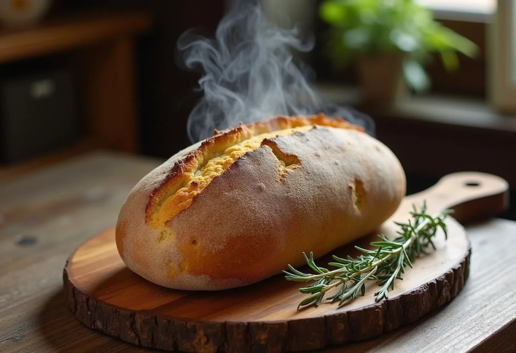 Preheat oven to 375°F (190°C). Brush loaf lightly with olive oil and sprinkle with additional herbs if desired. Bake for 30–35 minutes until golden brown and hollow-sounding when tapped underneath.