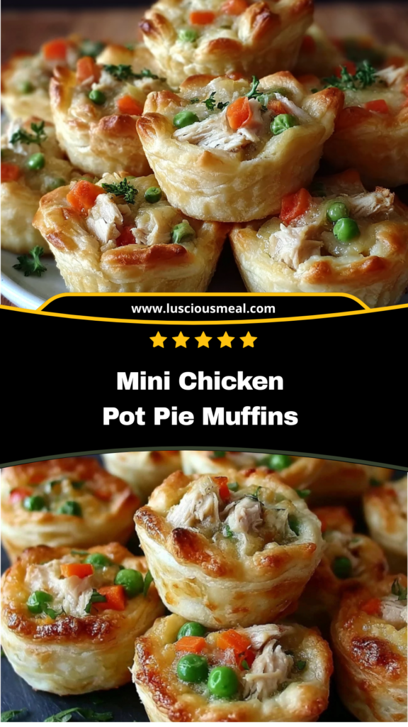 These mini chicken pot pie muffins prove that comfort food can be both convenient and completely satisfying. They take everything wonderful about traditional pot pie and make it more practical for modern life while losing none of the warmth and satisfaction that makes this dish so beloved. Whether you’re meal prepping for busy weeks, feeding a crowd, or simply want to enjoy the perfect individual portion of comfort food, these little gems deliver big satisfaction in every single bite. The combination of flaky pastry, creamy filling, and tender chicken creates exactly the kind of food that makes ordinary meals feel special and brings families together around the table.