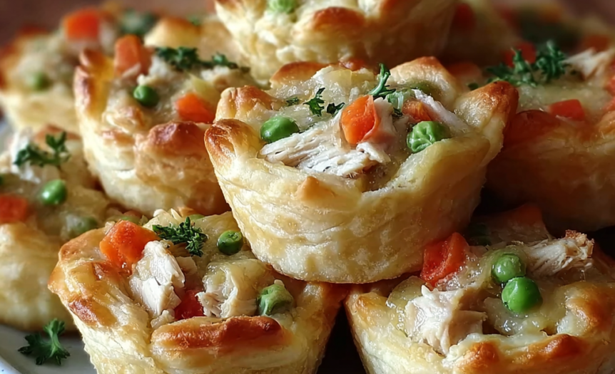 There’s something absolutely irresistible about comfort food that’s been reimagined into perfect individual portions, and these mini chicken pot pie muffins capture all the cozy satisfaction of traditional pot pie while making it infinitely more practical and fun to serve. Each muffin-sized portion delivers tender chicken, vegetables, and creamy sauce wrapped in flaky pastry that bakes to golden perfection—like having your own personal pot pie that fits perfectly in your hand.