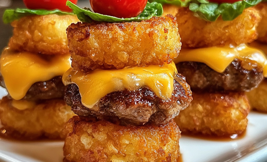 What makes them truly special is the creative twist—crispy tater tots take the place of burger buns, adding a golden crunch that perfectly complements juicy beef, melty cheese, and fresh toppings. They’re easy to assemble, highly customizable, and just plain fun to eat.