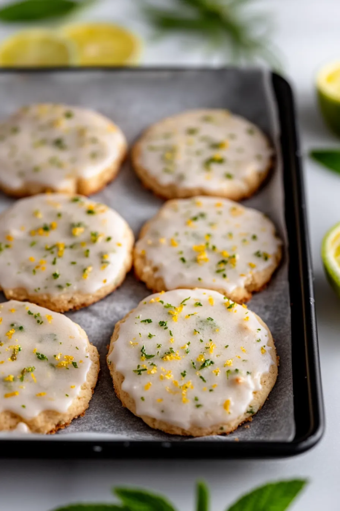This recipe works by balancing fat, sugar, and acidity. Butter provides richness, while sugar creates structure and slight crispness. Lime zest and juice introduce acidity, cutting through sweetness, while mint adds freshness. Chilling the dough ensures proper texture and prevents spreading. The glaze enhances flavor with a sweet-tart finish, creating a well-rounded cookie with a refreshing twist.