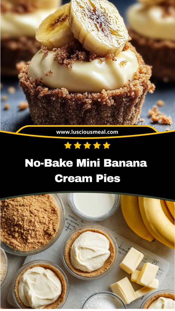 These no-bake mini banana cream pies represent the perfect combination of nostalgic comfort food and elegant presentation. They prove that sometimes the most impressive desserts come from taking classic flavors and presenting them in new, charming formats. Whether you’re entertaining guests or treating your family to something special, these adorable individual pies deliver all the satisfaction of traditional banana cream pie with the added joy of perfect portion control and irresistible visual appeal.
