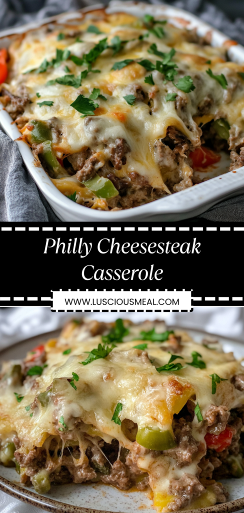 This Philly cheesesteak casserole is pure genius – all the incredible flavors of an authentic Philly cheesesteak transformed into the most comforting, family-friendly casserole that captures every delicious element you love about the iconic sandwich but in a form that’s perfect for feeding a crowd and way easier to eat. Picture tender slices of seasoned beef, perfectly caramelized onions and peppers, and layers of gooey melted cheese all baked together over a base of crispy bread that soaks up all those amazing flavors while staying satisfyingly substantial. I created this recipe when I was craving that specific Philly cheesesteak experience but wanted something I could make for the whole family without the hassle of assembling individual sandwiches, and it’s become such a requested dinner that we now have “Philly night” because this casserole somehow tastes even better than the original sandwich while being infinitely more practical for busy weeknights. The best part is how this captures that authentic Philly flavor – the perfectly seasoned beef, the sweet caramelized vegetables, and that incredible cheese blend – while being substantial enough to serve as a complete meal that leaves everyone completely satisfied.