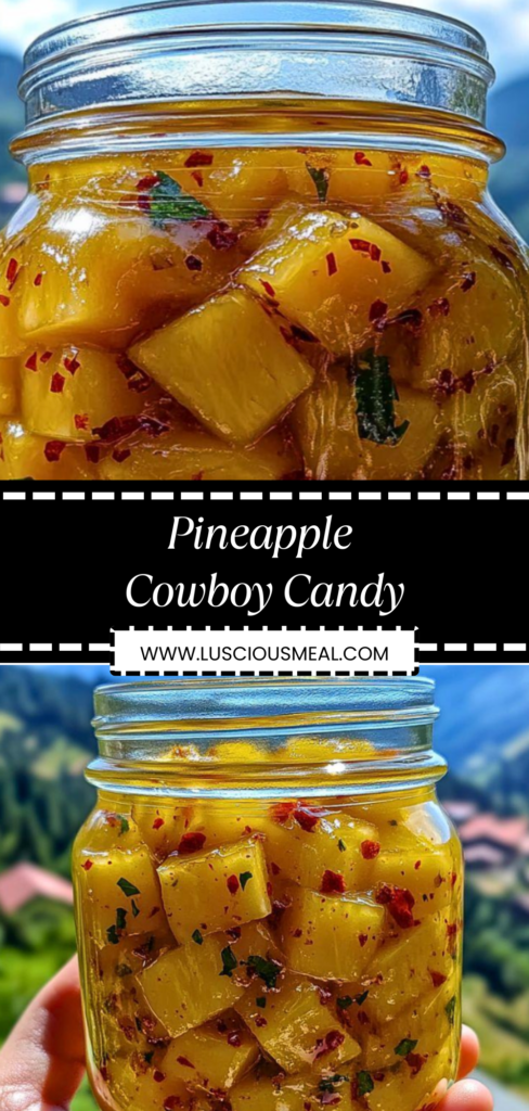 This pineapple cowboy candy transforms fresh pineapple and jalapeños into an addictive sweet and spicy condiment that delivers the perfect balance of tropical sweetness and fiery heat with a delightful chewy texture. The slow cooking process concentrates the flavors while creating a glossy, jam-like consistency that’s both versatile and irresistible. If you enjoy this style of bold, sweet-heat condiment, you might also like jalapeño pepper jelly, spicy fruit chutneys, or other preserves that combine unexpected flavor combinations.