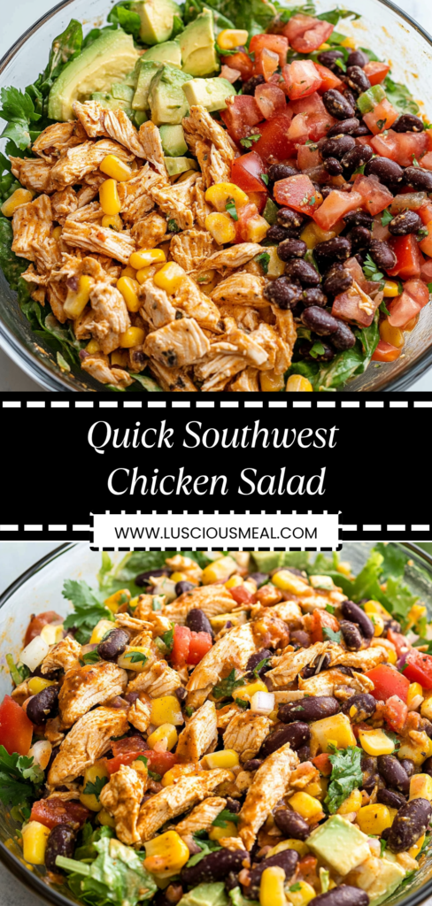 This quick Southwest chicken salad is everything you want in a perfect meal – fresh, vibrant, and packed with bold flavors that wake up your taste buds while being healthy, satisfying, and ready in just 15 minutes from start to finish. Picture tender, seasoned chicken piled high on crisp lettuce with black beans, sweet corn, juicy tomatoes, creamy avocado, and a zesty lime-cilantro dressing that ties everything together in the most delicious way possible. What makes this salad absolutely irresistible is how it combines the best of Tex-Mex flavors with fresh, healthy ingredients to create something that feels indulgent but is actually incredibly nutritious and energizing. I created this recipe when I needed quick, healthy meals that didn’t sacrifice flavor or satisfaction, and it’s become such a go-to that I now make variations of it several times a week because it’s endlessly customizable and always leaves me feeling great. The secret is the perfectly seasoned chicken and that incredible dressing that makes every bite burst with fresh, zesty flavor while providing complete nutrition that keeps you satisfied for hours.