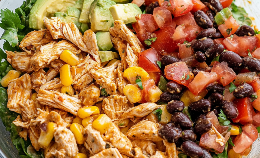 The brilliance of this salad lies in the perfect balance of textures, flavors, and nutrients that create a meal that’s both incredibly satisfying and refreshingly light. The seasoned chicken provides lean protein and savory depth, while the combination of beans and corn adds fiber, complex carbs, and natural sweetness that complements the bold spices. The fresh vegetables provide crunch and brightness, while the avocado adds healthy fats and creamy richness that makes every bite luxurious.
