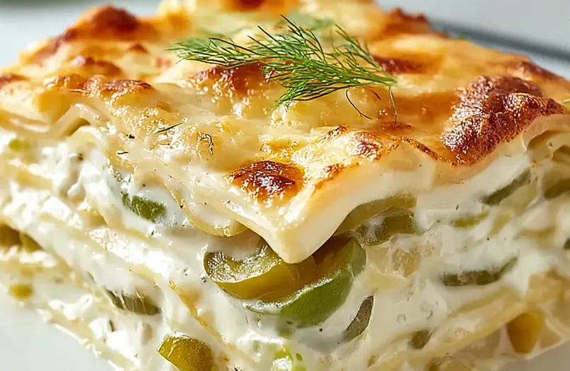 Rich Dill Pickle Lasagna is a bold twist on the classic comfort dish, layering tender pasta with creamy cheddar béchamel, dill-infused ricotta, seasoned beef, and tangy dill pickles. The briny bite of pickle slices melts into the rich cheese sauce, creating a surprisingly balanced combination of creamy, savory, and tangy flavors. It’s unexpected, indulgent, and guaranteed to be a conversation starter at the dinner table.