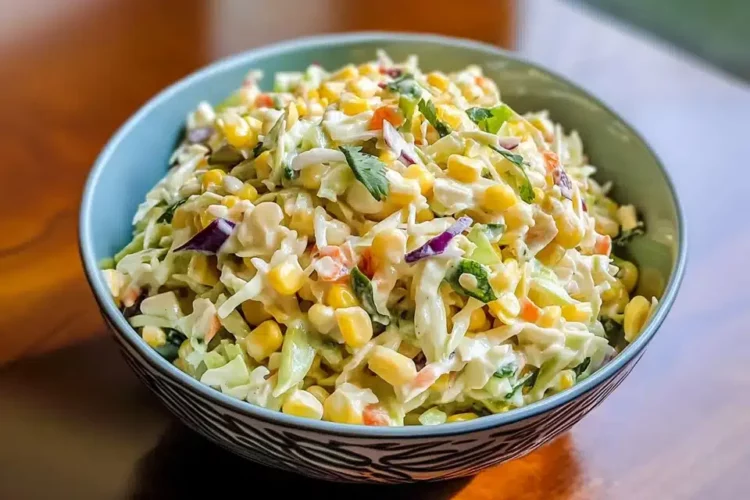 Spicy Jalapeño Corn Coleslaw is the kind of side dish that quickly becomes a staple for warm-weather meals. With its colorful ingredients, crisp texture, and lively balance of sweet, creamy, and spicy flavors, it elevates everything from backyard barbecues to simple weeknight dinners. The recipe is flexible enough to adapt to personal tastes while remaining simple and reliable. For a lighter version, you can substitute part of the mayonnaise with Greek yogurt or reduce the sugar slightly while still maintaining the dish’s signature bright flavor.