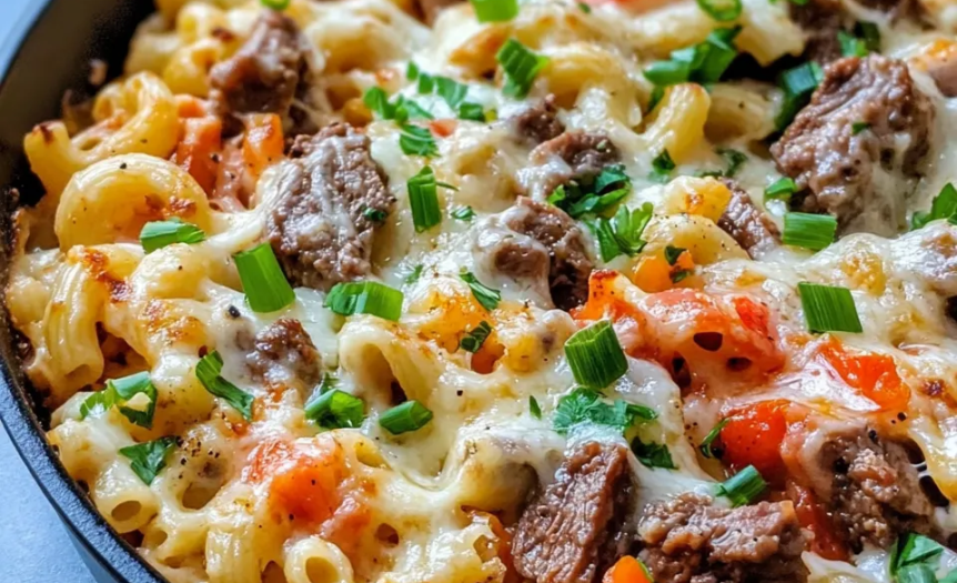 This Steak & Pepper Jack Queso Mac represents the perfect evolution of comfort food—taking a beloved classic and elevating it with premium ingredients and thoughtful technique while maintaining the approachable, satisfying nature that makes mac and cheese universally appealing. The recipe demonstrates that weeknight dinners don’t have to choose between convenience and quality, as the entire dish comes together in about 35 minutes yet delivers flavors that rival restaurant preparations costing three times as much. The versatility of this recipe makes it valuable for various occasions, from casual family dinners to entertaining guests, and the numerous variation possibilities ensure you’ll never tire of returning to this base formula. The combination of tender steak, creamy spiced cheese sauce, and perfectly cooked pasta creates a harmony of textures and flavors that satisfies on both physical and emotional levels. Whether you’re a college student looking to impress friends, a busy parent seeking a quick but special dinner, or a home cook wanting to expand your comfort food repertoire, this recipe delivers consistent, crowd-pleasing results. For those monitoring their calorie intake, consider using leaner sirloin, reducing the cheese to 1½ cups, and substituting 2% milk to lower the calorie count to approximately 450-480 per serving while still maintaining the delicious, satisfying qualities that make this dish so irresistible.
