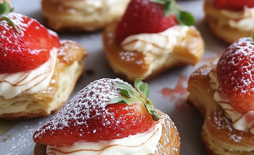 Assembly timing: Fill the puffs as close to serving time as possible to maintain the crispy texture of the shells. The moisture from the cream and strawberries will gradually soften the pastry, so aim to assemble within 1-2 hours of serving for optimal texture contrast.