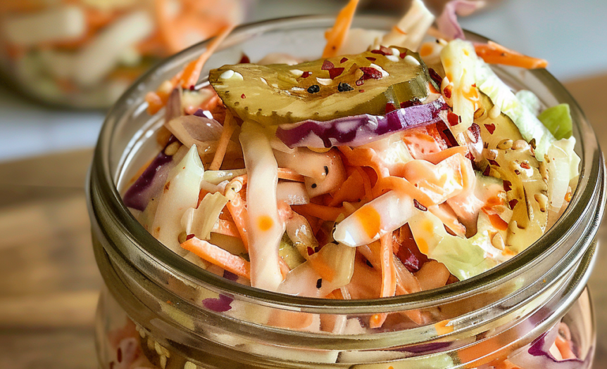 Sweet & Spicy Pickle Slaw is a bold, crunchy side dish that balances creamy, tangy, sweet, and spicy flavors in every bite. Crisp cabbage and carrots are tossed with chopped dill pickles and coated in a zesty Sriracha-honey dressing, making this slaw the perfect refreshing addition to barbecues, sandwiches, and family dinners.