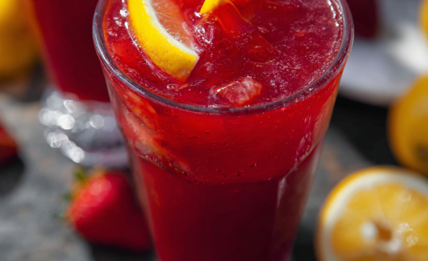 This drink has a clean, crisp finish with layers of tart hibiscus, juicy strawberries, and bright lemon. The sweetness is just enough to round out the edges without being syrupy. Hibiscus adds floral and cranberry-like notes, making this drink unique and refreshing without any artificial flavors.