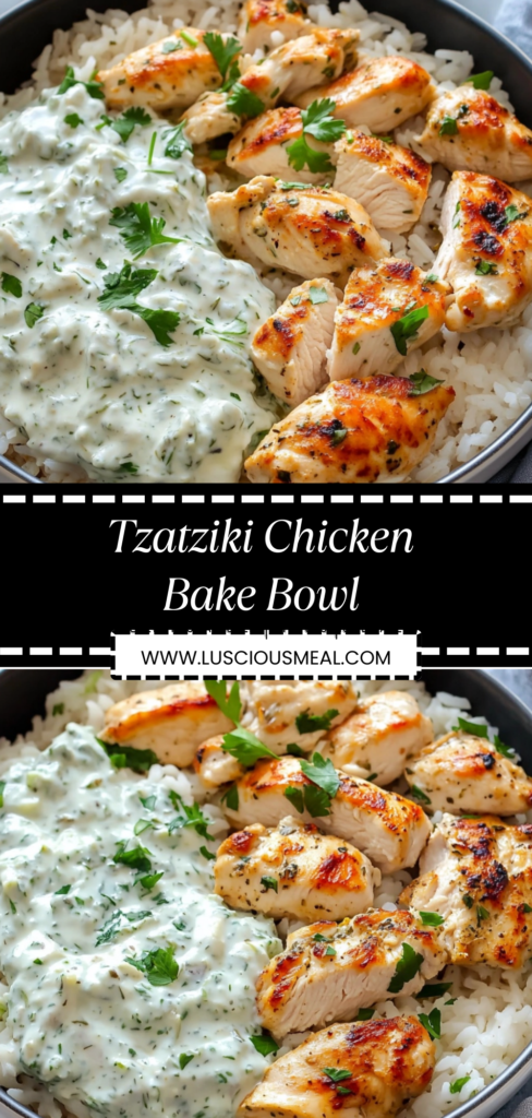 This tzatziki chicken bake bowl brings together tender, herb-seasoned chicken with the cooling brightness of homemade tzatziki and Mediterranean vegetables in a one-dish meal that’s both satisfying and surprisingly light. The chicken absorbs aromatic Greek flavors during baking while the vegetables develop their own caramelized sweetness, creating layers of complementary tastes that transport you straight to the sunny Mediterranean. If you enjoy this style of fresh, herb-forward cooking, you might also like Greek lemon chicken with potatoes, Mediterranean stuffed peppers, or roasted vegetable and feta grain bowls.